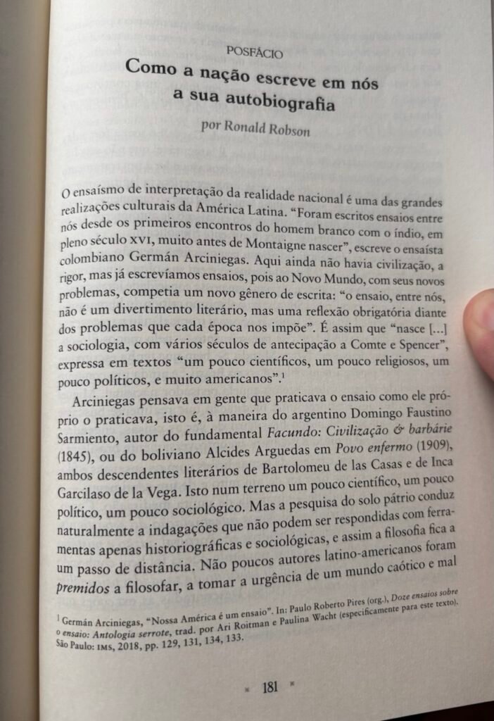 Faz parte de minha interpretação fáustica da cultura brasileira a percepção de que, para nós, a face pessoal da existência é tão impositiva, é sentida de forma tão radical, que não concebemos ciência sem consciência, ou não distinguimos interpretação da realidade nacional de autointerpretação do próprio intérprete. Disso trato no ensaio “Como a nação escreve em nós a sua autobiografia”, publicado como posfácio a O horizonte de consciência do brasileiro: conceitos e métodos para o estudo da política e cultura nacionais, livro de Olavo de Carvalho recém-publicado que documenta um curso seu de 2016, o qual dá bem ver o fundamento pessoalista e freyriano de seu método.